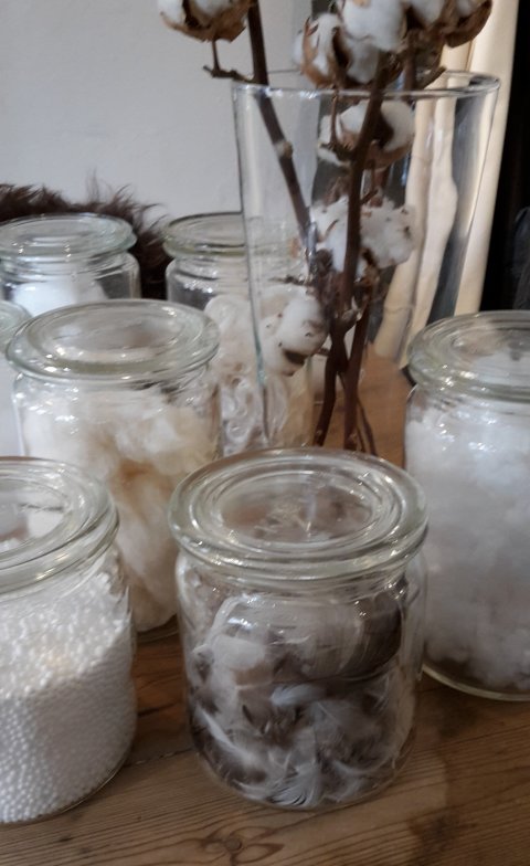 naturfyld i form af småfjer. Eller i en kombination af småfjer